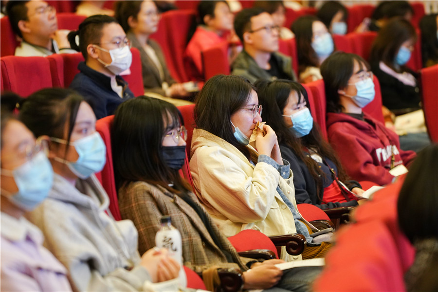 在国家和民族处于危亡的关键时刻,中国共产党人领导的太行儿女以不怕牺牲、不畏艰险的革命英雄主义精神,在极其艰苦的条件下百折不挠、艰苦奋斗,万众一心、敢于胜利,与人民鱼水情深,为人民利益无私奉献,创造了一个个抗战奇迹。年轻勇敢、光荣牺牲的优秀指挥员叶成焕,“太行浩气传千古、留得清漳吐血花”的八路军副参谋长左权,“上前线不畏强敌,管钱财两袖清风”的金身将军王政柱和罗健夫妇,用乳汁撑起敌战后方、感天动地的“太行奶娘”……讲述中,崔韶光老师几度哽咽,结合她走访革命老前辈、将帅子女的亲身经历,让现场师生深切地感受到了“什么是共产党”“什么是优秀的共产党员”“什么是伟大的太行精神”,深切感受到“正是有了这些英雄前辈为中国人民负重前行,才有了今天幸福的生活”,现场师生无不动容。报告中,一个个真实场景的还原、一张张珍贵画面的呈现,再加上崔老师慷慨激昂、催人泪下的讲述,不时赢得现场师生阵阵持久热烈的掌声。