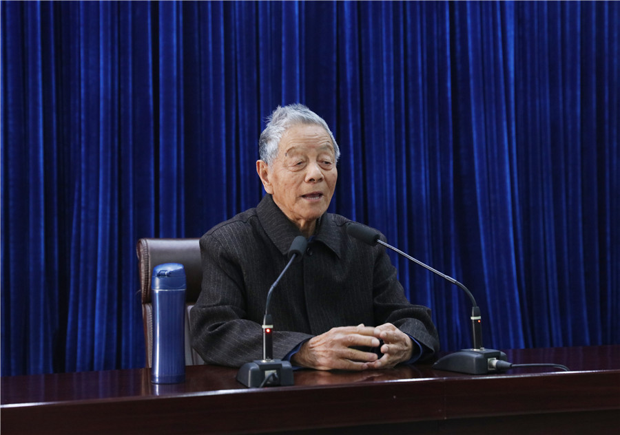 94岁高龄的曹庆云1945入党、1947参军,当他迈着蹒跚的步伐,谢绝工作人员的搀扶,执意自己走上讲台时,台下响起阵阵掌声。“中国共产党紧紧依靠人民群众,逢山开路遇水搭桥,闯过了艰难险阻,夺取了一个又一个的胜利,创造了一个又一个的伟大成就。”曹庆云结合自己的亲历亲闻、所思所感,为大家讲述党的奋斗历史,追忆党艰苦卓绝的峥嵘岁月。抗战胜利、重庆谈判、转战陕北、东渡黄河……生动翔实的故事、思路清晰的叙述,娓娓道来、精彩纷呈,让在场师生深受感动,“中国共产党不简单”“中国共产党不容易”“中国共产党是伟大的”曹庆云叮嘱大家,一定要学党史、感党恩、听党话、跟党走,从党的百年伟大奋斗历程中汲取继续前进的智慧和力量。