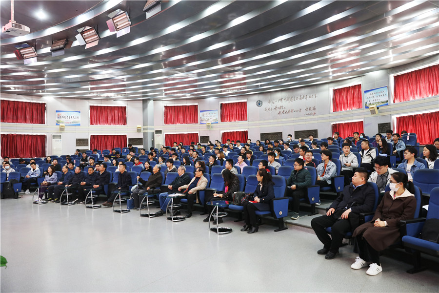 张银喜为师生作了题为《党的教导记心上不忘初心永向前》的报告,讲述了自己在党的抚育下的成长经历。上过山、下过乡,吃过派饭、干过农活,到工厂、下车间……每时每刻离不开党组织的关怀、教育和培养。张银喜讲到,赴日留学,异国他乡举目无亲,党和国家的关怀让自己深深感受到了来自祖国母亲的温暖,感受到了祖国的强大。退休前长期奋斗在教学一线,退休后,79岁的张银喜仍为学校的建设和发展默默奉献着,担任老年体协主席、老年金声合唱团团长。“伟大的中国共产党成立一百年,是矢志践行初心使命的一百年,是创新辉煌、继往开来的一百年。”张银喜希望青年学子们在中国共产党的正确指引下,努力学习科学技术、专业知识,攻克科技难关,珍惜当下,不负韶华,只争朝夕,报效祖国。“没有共产党就没有新中国……”在张银喜的带领下,全场师生起立合唱,激昂的歌声响彻整个报告厅,是对祖国无限的祝福,是永远跟党走的最强音。