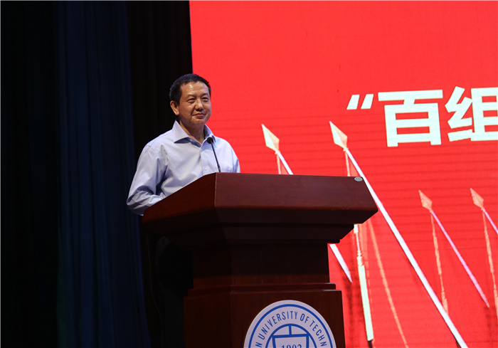 5月26日下午,学校党史学习教育“百组千讲5·20教育计划”红色电影展播第12场《建军大业》在虎峪校区同泽会堂开播,校党委书记郑强,中国工程院院士、校长黄庆学,校党委副书记刘润祥,副校长张献明与全校中层干部、辅导员和学生党员代表及挺进第23届CUBA中国大学生篮球联赛精英八强的男篮队员和教练员一道观看了电影。观影活动由刘润祥主持。